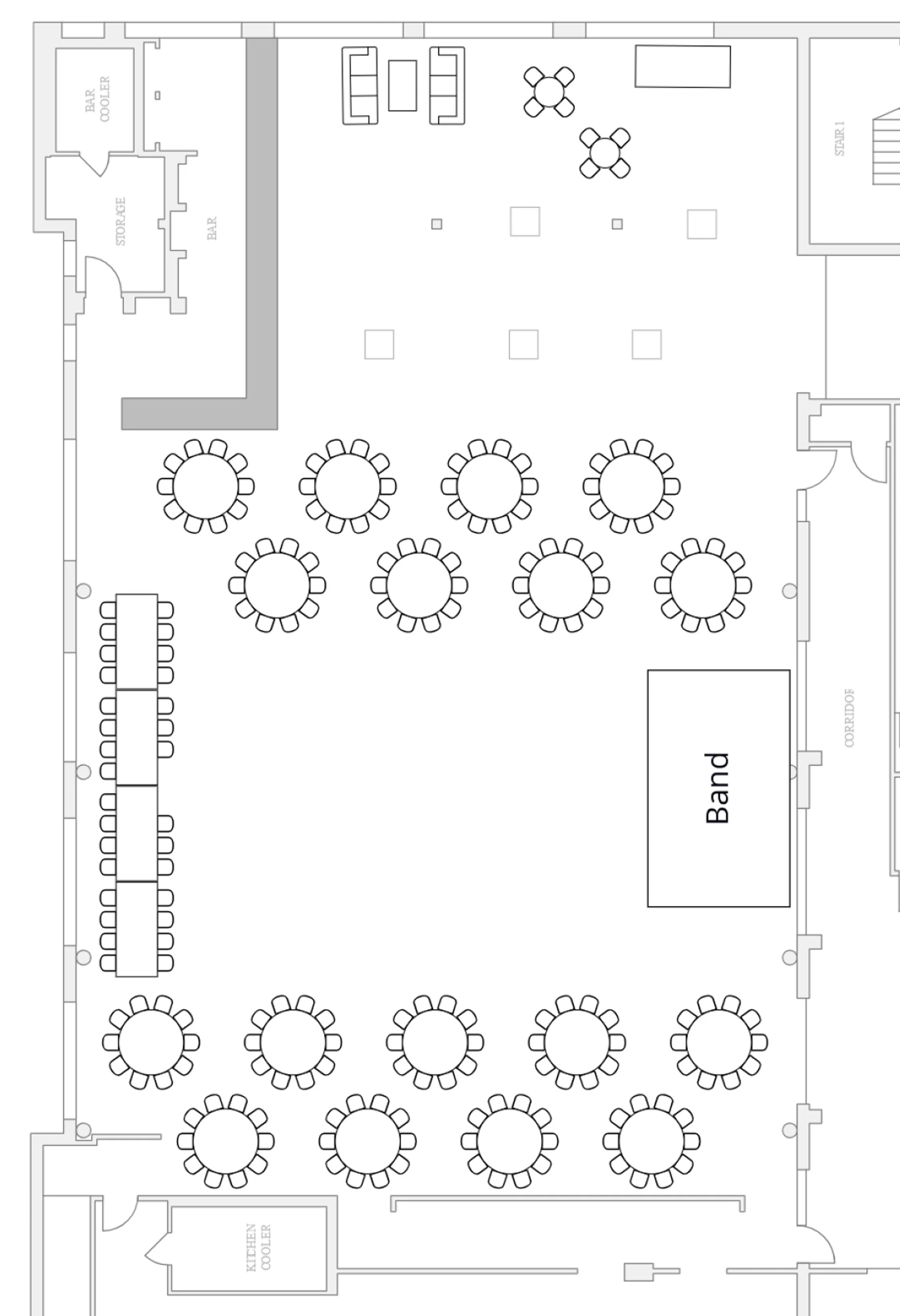 Walden is intimate enough for 100 guests but spacious enough to seat 260.